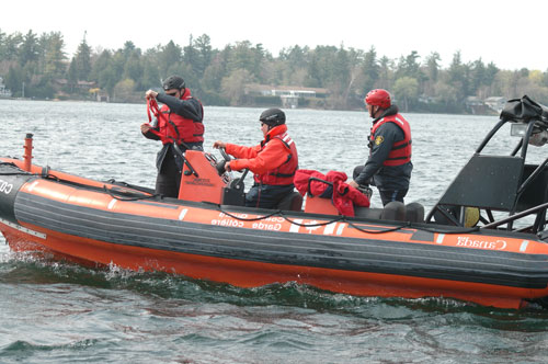 Part of the Cold Water Boot Camp safety net was provided by Mark Gagnon, a Coast Guard Rescue Specialist with CCG Central and Arctic Region. Mark attended to the Boot Camper recovery duties using one of their RIB’s ( rigid hull inflatable).